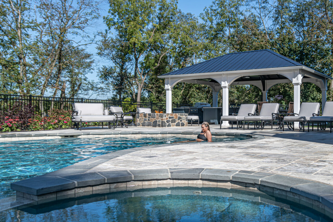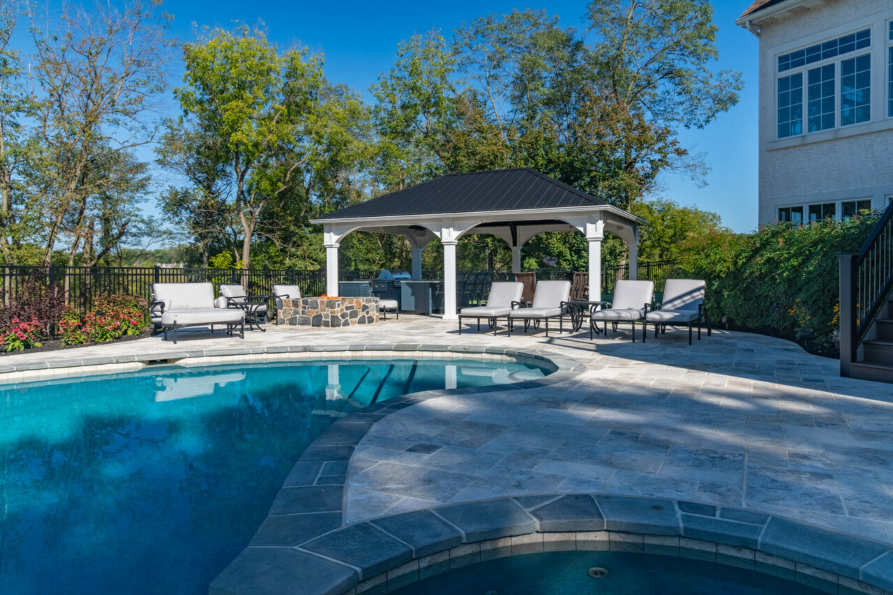 Custom Travertine Pool Patio, Pavilion, Outdoor Kitchen and More