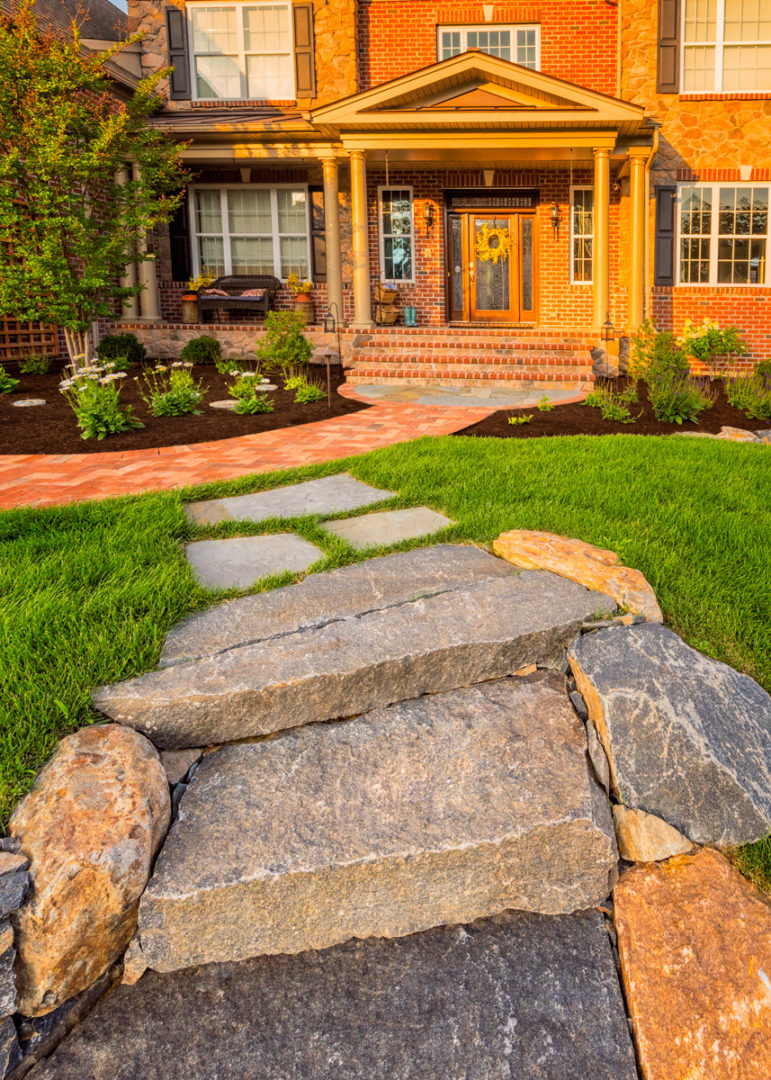 - Granite Boulder and Curb Stone Path leading from the Cul-de-sac to the front porch