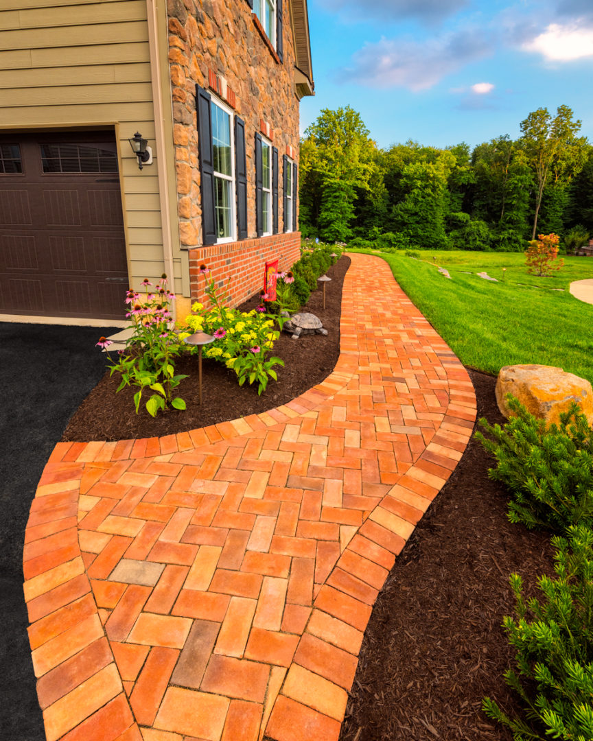 - Dry laid clay brick walkway that ties in with the brick on the home