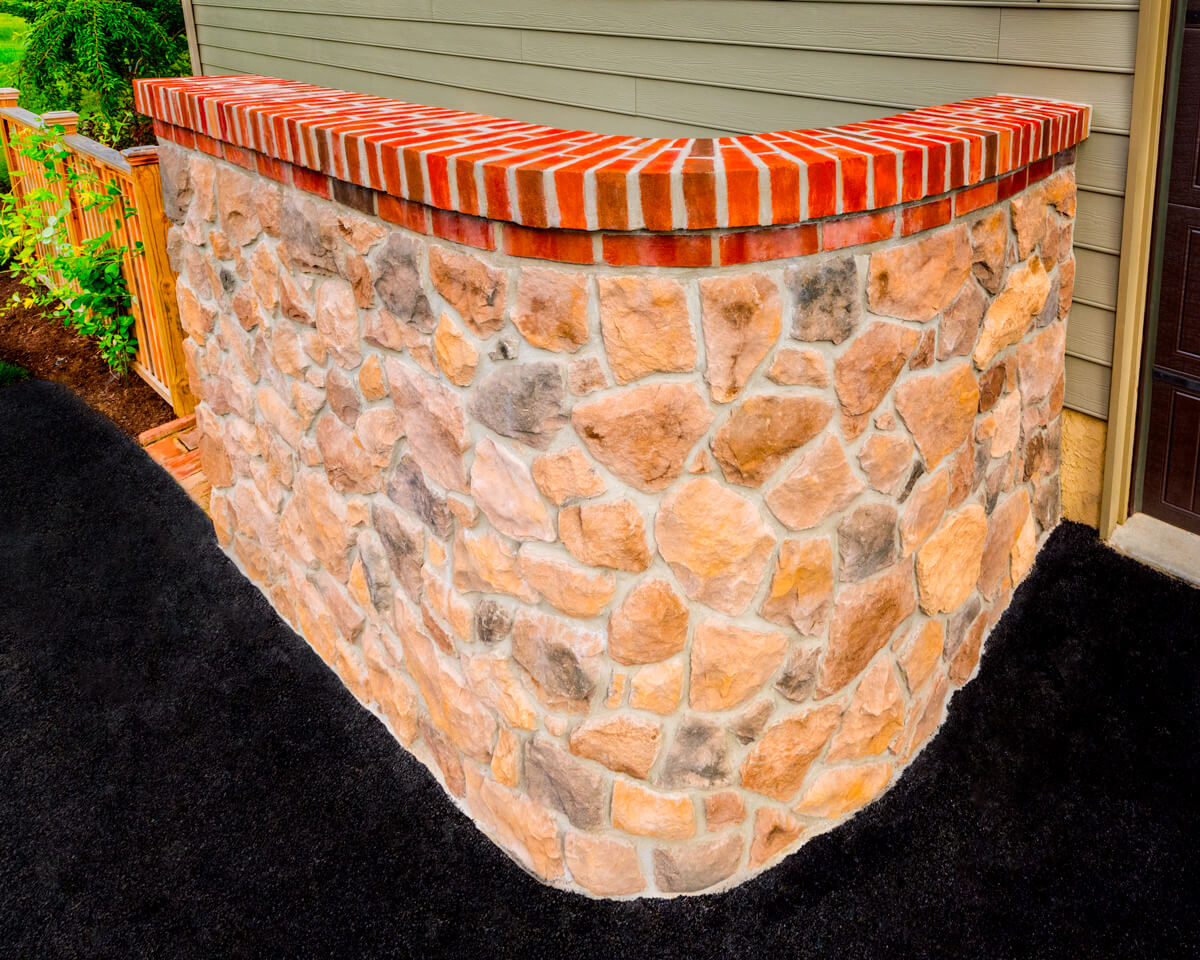 - Designing and installing a brick and natural stone overlay on the existing concrete porch that feels like it has always been a part of the home