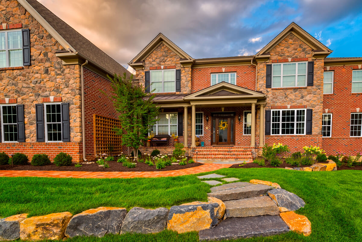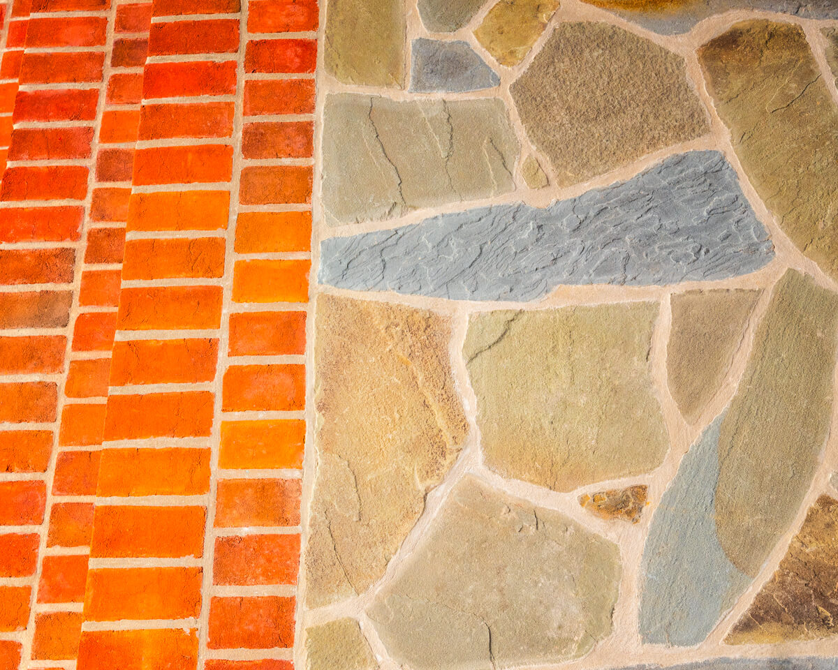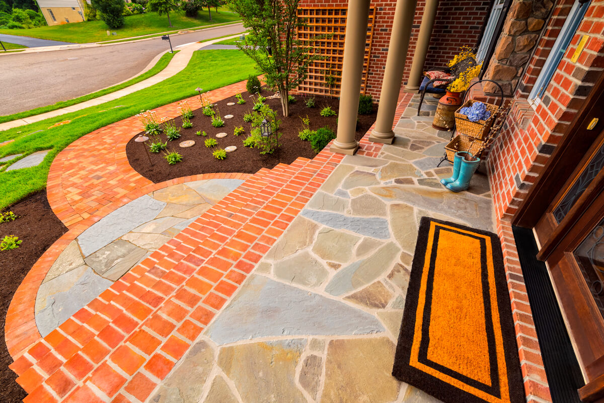 - Natural stone and brick porch overlay