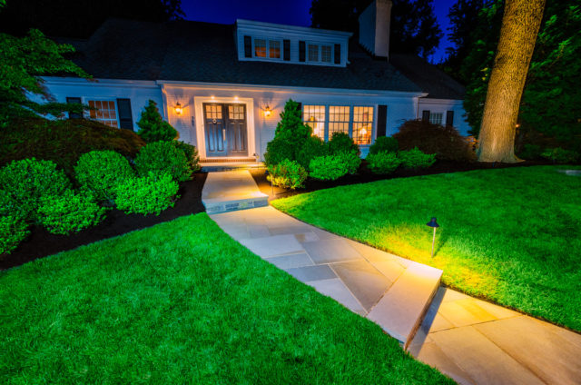Beautiful high end outdoor lighting on your home’s exterior and around the perimeters of your property will help make your house look more upscale while illuminating the landscape at the same time. Your hardscape or landscape services company will work out a custom design that works best for your home.